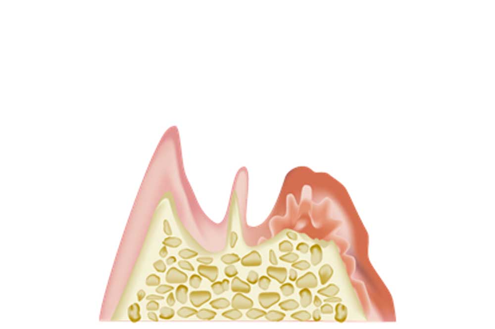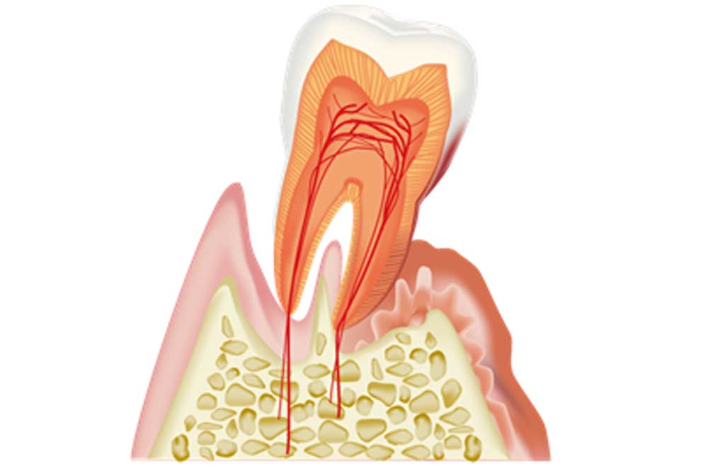 歯と歯肉の境目(ポケット)の清掃が行き届かないと、そこにプラークが停滞し炎症を起こし、歯肉が赤くなったり、腫れたりします。自覚症状に乏しいため、気がつかないうちにさらに進行すると、膿が出たり歯が大きく動揺し手遅れとなり、場合によっては、歯を抜かなければならなくなってしまう病気です。